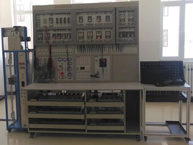 1、模型電梯設4層4站,由模擬井道架、轎廂、對重、曳引機、電梯門、門電機、各層站外呼盒及主要安全裝置組成,固定設置在實驗臺側(cè)面。模擬井道架內(nèi)需配置用于檢測轎廂位置的樓層感應器、平層感應器(與實際電梯相似)等,其接線端子引至模擬井道架的插接孔上。井道架采用金屬材料為主體支架,有機玻璃封閉。★設備必須采用臺式結(jié)構(gòu),設置活動式抽屜電氣板,每層抽屜板均設置有公共接線板(總線型接線方式,總線連接點數(shù)必須達到120點以上),抽屜電氣板之間采用工業(yè)坦克鏈連接,公共抽屜板連線采用真實電梯多芯隨行電纜。